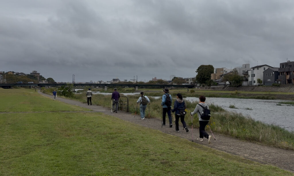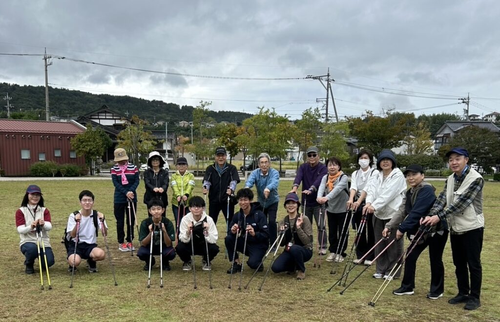 令和7年10月19日(日)10時から12時まで大桑ぐるぐる公園発着で歩きました。今回は金大附属中学校の4名の生徒の皆さんが校外学習にポールウォーキングを取り上げてくれるそうで体験参加してくれました。合わせて20名の皆さんと一緒にゆっくり組としっかり組に分かれて犀川沿いを歩きました。小雨の時もありましたが完歩することができました。次回は来年春に会いましょう!参加いただきありがとうございました。 担当コーチ 澤田MCpro・中嶋MCpro・高島BC Follow me!